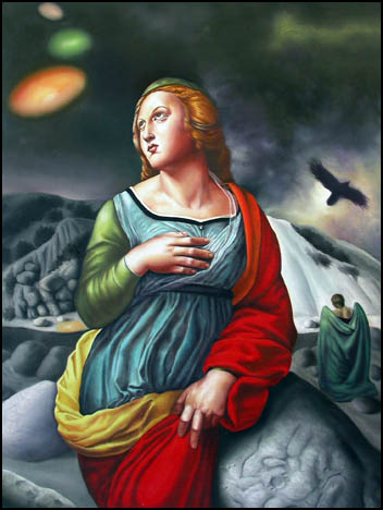 El tema de mi pintura narrativa se ha elaborado a partir de relatos de encuentros espirituales o místicos encuentran tanto en las historias de períodos anteriores de la historia contemporánea y de los informes que los paralelos. Durante la época actual, las imágenes que se acerca más a las imágenes arquetípicas se encuentran en las pinturas de las culturas tradicionales se encuentran en las cuentas de las experiencias cercanas a la muerte y de encuentros con supuestas inteligencias extraterrestres, y he optado por centrarse en estas imágenes como mi tema.
