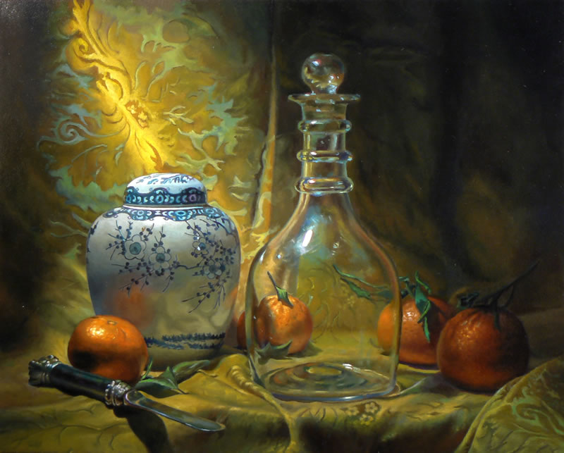 "Mi trabajo tiene una deuda evidente y consciente de los grandes maestros holandeses de naturalezas muertas de hace 350 años. Con cada pincelada, me esfuerzo por cumplir con el ejemplo que dan, en la composición equilibrada y elegante, la observación clara y precisa ejecución. Dicho esto, vivir y trabajar mucho en el día de hoy. A pesar de la influencia suele ser sutil, la sensibilidad moderna, inevitablemente, se expresa. Tengo una verdadera delicia en el descubrimiento de la unión de estos dos mundos.